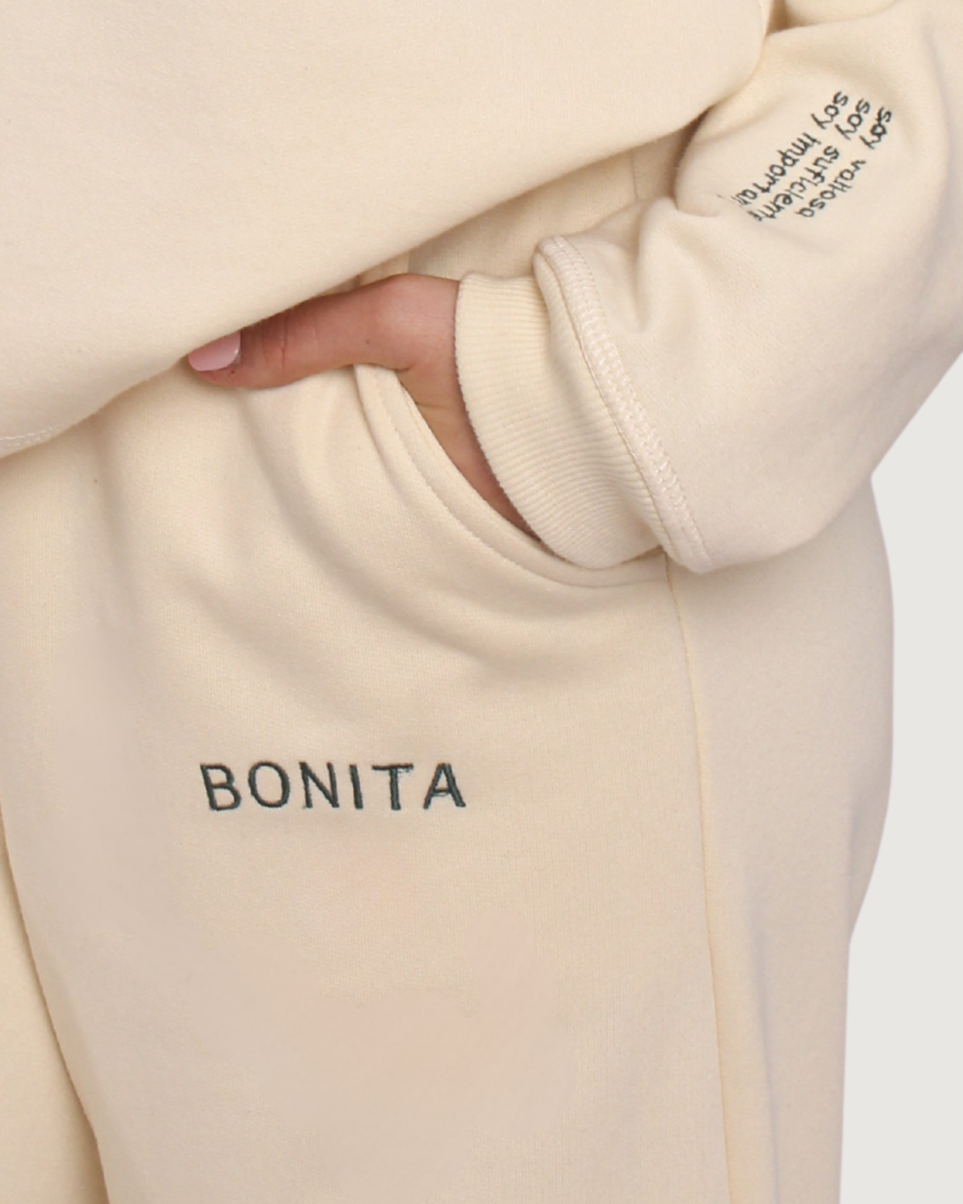 ✨ En el pantalón lleva bordada la afirmación “vales mucho más de lo que piensas”, un recordatorio para que nunca olvides que eres más valiosa de lo que imaginas.