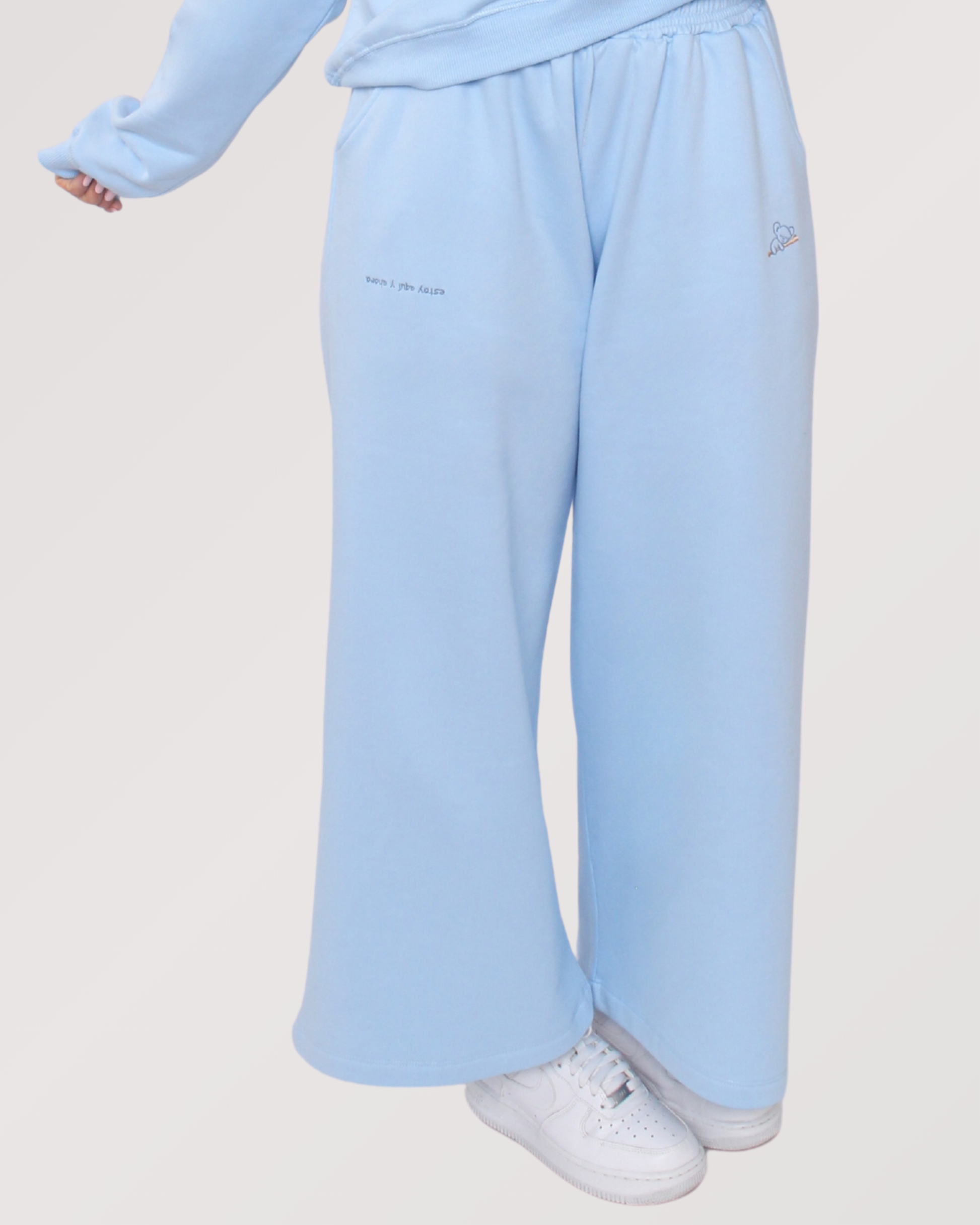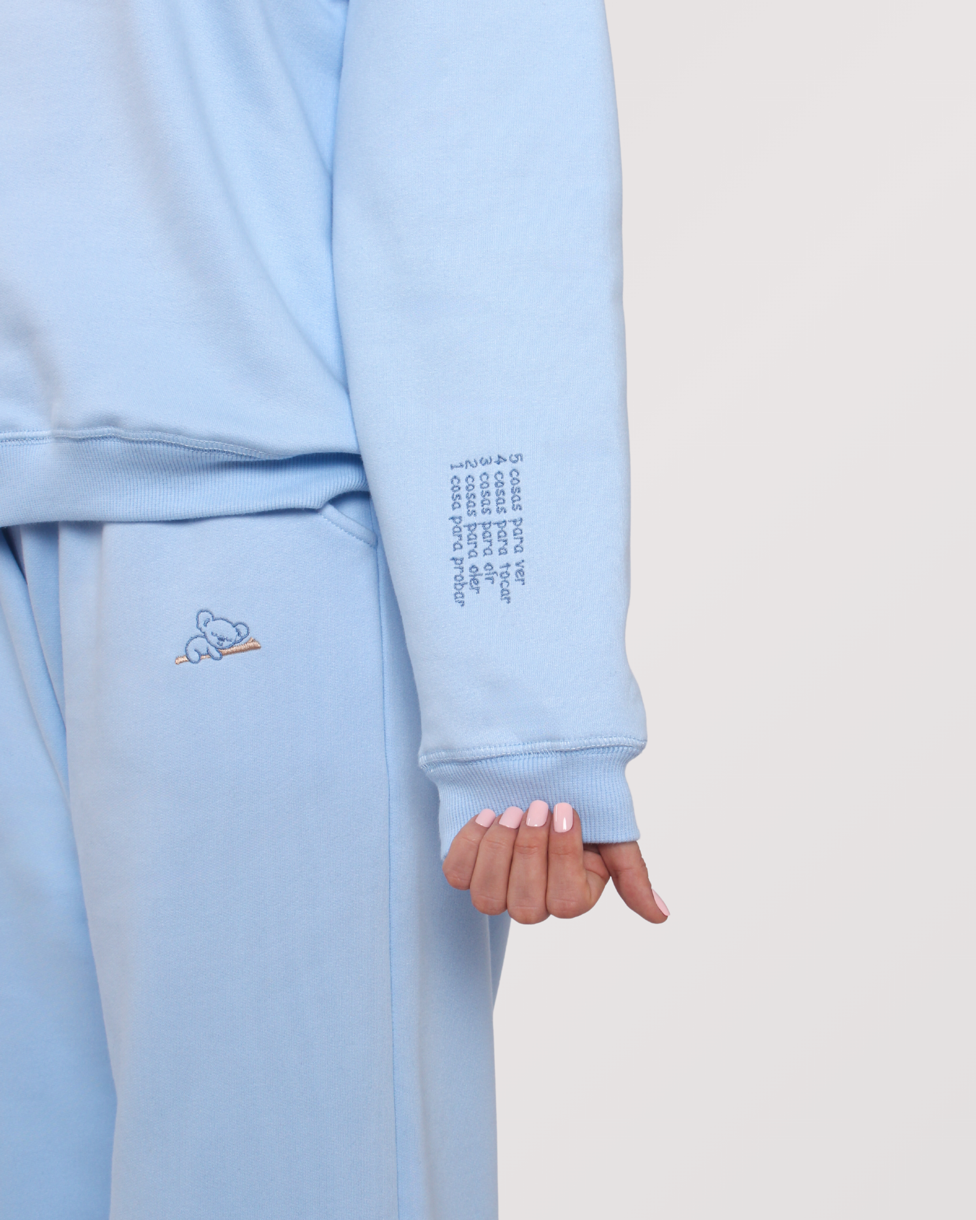 ✨ En el pantalón lleva bordada la afirmación “estoy aquí y ahora”, un recordatorio amable de que el presente es un lugar seguro.