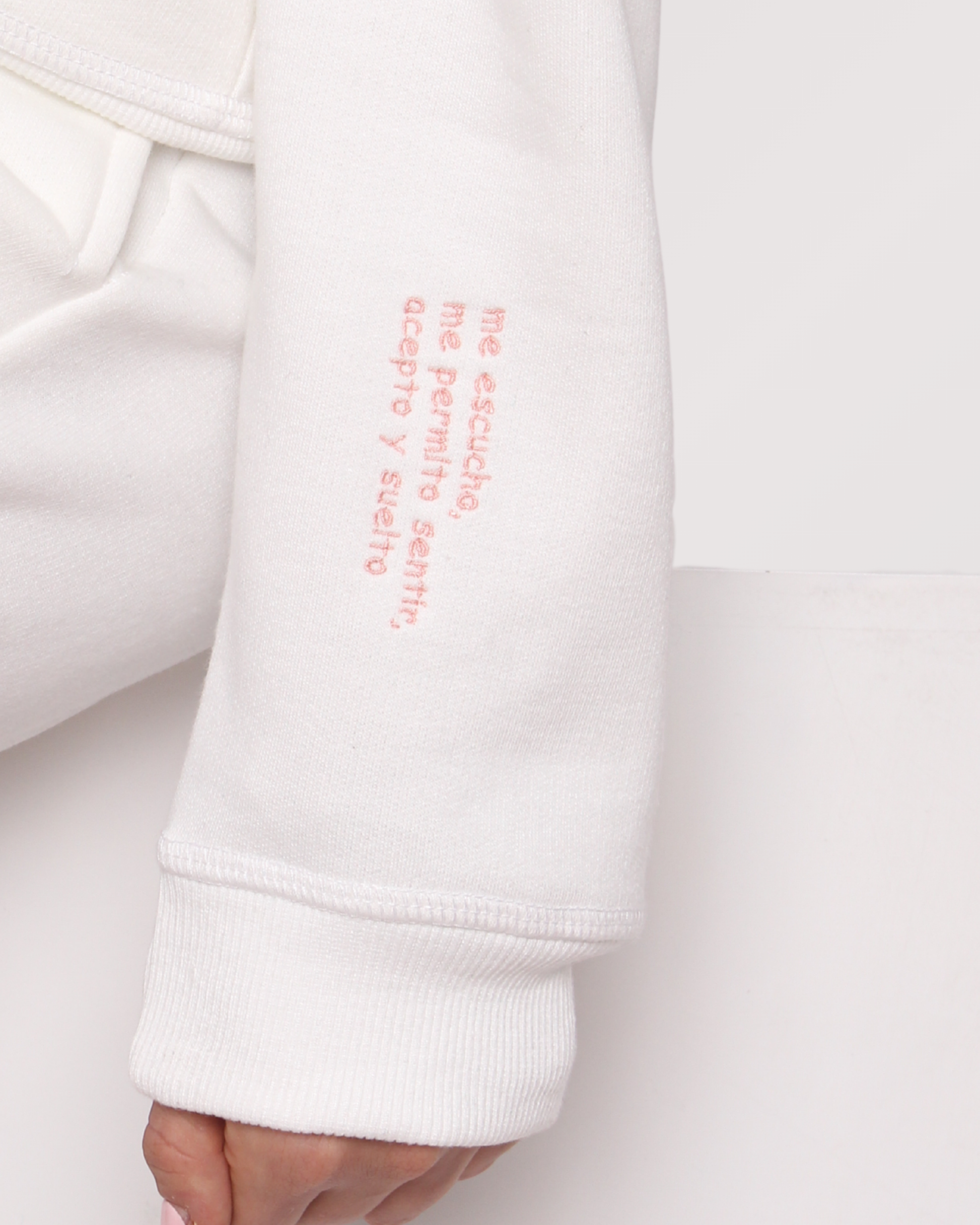 ✨ En la manga lleva bordada la frase: “me escucho, me permito sentir, acepto y suelto”, una guía emocional para transitar momentos difíciles, validando lo que sientes y dejando ir lo que ya no te corresponde.